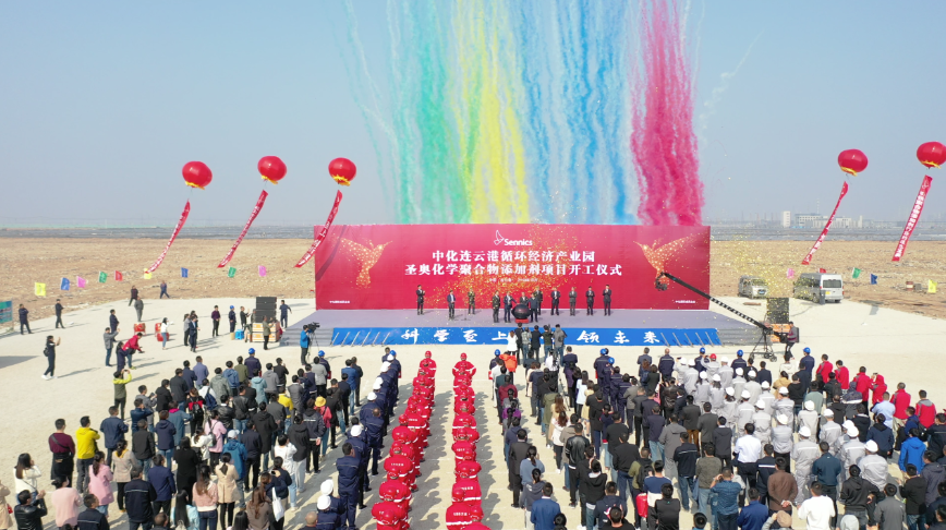 10月20日上午,圣奥化学聚合物添加剂项目开工仪式在中化连云港循环经济产业园举行,中化集团化工事业部总裁、中化国际总经理、圣奥化学董事长刘红生,中化国际副总经理、圣奥化学CEO苏赋,连云港市委书记项雪龙、市长方伟共同点亮象征项目启动的水晶球,这标志着圣奥化学战略发展向前迈出关键性一步。