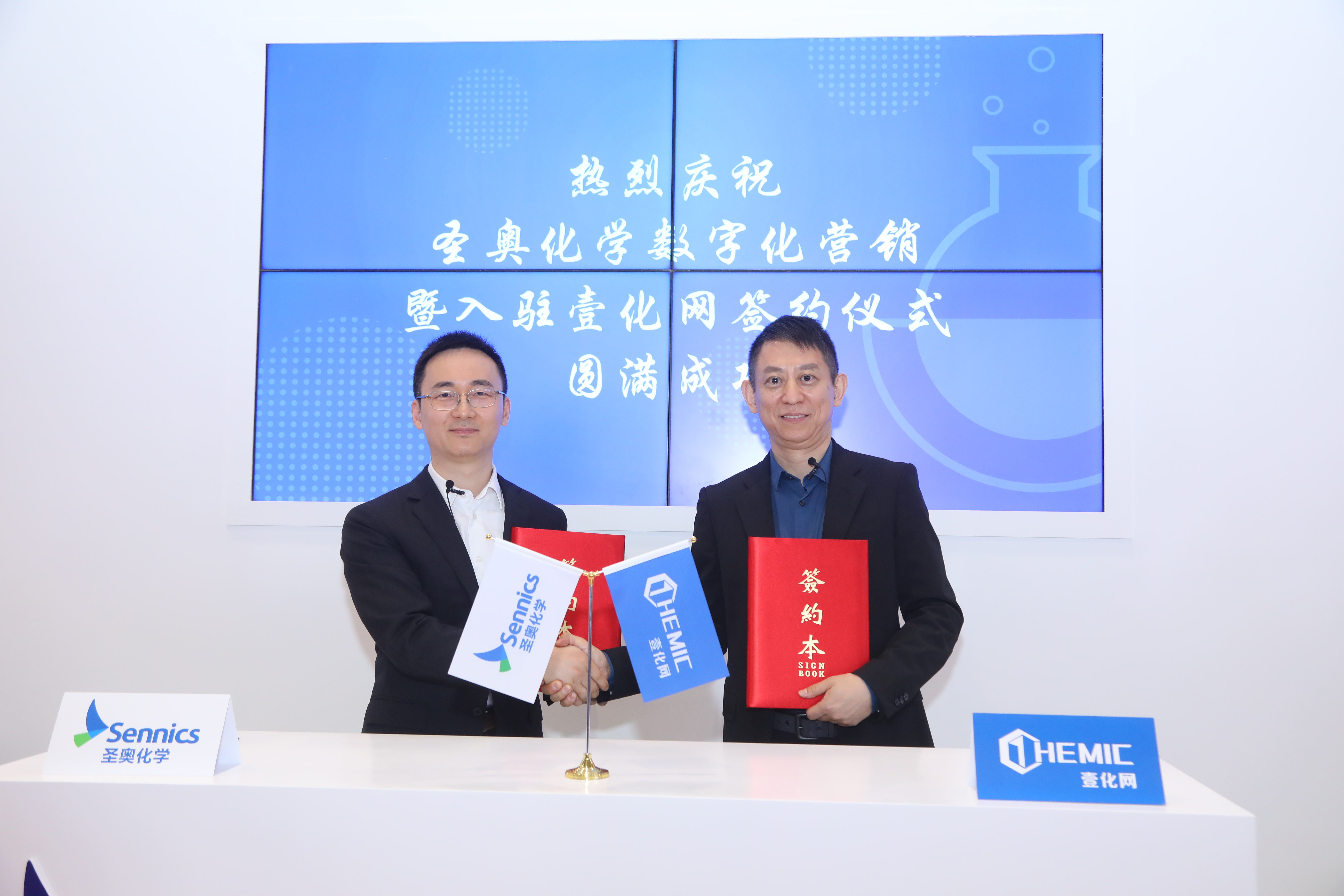 展会期间,圣奥化学与中化石化电子商务(上海)有限公司(以下简称中化石化电商)签署合作备忘录,中化国际副总经理、圣奥化学CEO苏赋线上致辞。圣奥化学副总裁鲁波,中化石化销售有限公司副总经理、中化石化电商总经理国辉分别代表双方签署协议。根据协议,双方将基于在战略发展方向上的共性及在各自领域内的专业性,整合资源,携手并进,在共创数字化电商平台方面开展深度合作。