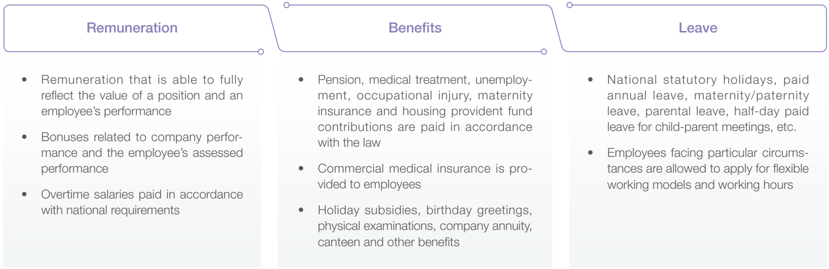 The company has built a system with multiple incentives covering the entire life cycle of the business, and has introduced a range of incentives including innovation and equity incentives, inter alia. It links employee incentives closely with their responsibilities, skills and contributions, and continuously improves employees’ development capabilities and enthusiasm for creating results.